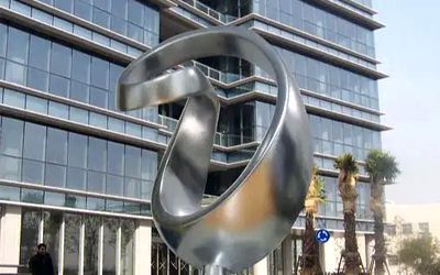 地產類不銹鋼雕塑以大氣磅礴為主要表現形式,一般都是抽象的,傳遞一種視覺上的震撼效果,常見如圓環、鏤空球、云朵、假山、浪花、水滴等等。